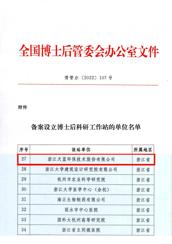 天藍環(huán)保以團隊建設(shè)為根本,擁有一支專業(yè)的研發(fā)團隊,在技術(shù)研發(fā)、知識產(chǎn)權(quán)、產(chǎn)業(yè)創(chuàng)新等方面位于行業(yè)領(lǐng)先地位。公司建有國家級博士后科研工作站、浙江省工業(yè)鍋爐爐窯煙氣污染控制工程技術(shù)研究中心、浙江省省級企業(yè)研究院、浙江省省級高新技術(shù)企業(yè)研發(fā)中心等多個科研平臺,擁有浙江省燃煤工業(yè)鍋爐爐窯煙氣污染控制技術(shù)創(chuàng)新團隊。榮獲浙江省科學(xué)技術(shù)進步獎一等獎(3項)、教育部科學(xué)技術(shù)進步獎一等獎、中國環(huán)境保護產(chǎn)業(yè)協(xié)會環(huán)境技術(shù)進步一等獎、中國專利獎優(yōu)秀獎等榮譽。